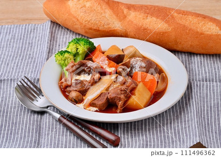 ビーフシチュー、牛すね肉のビーフシチュー、牛肉のデミグラスソース煮込み。