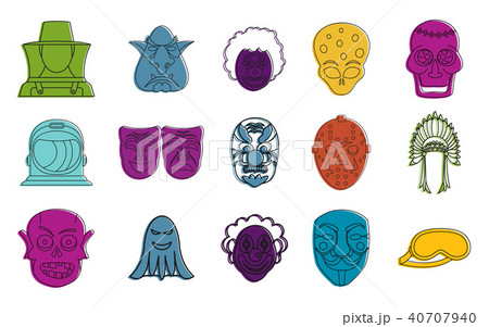 Mask icon set, color outline style