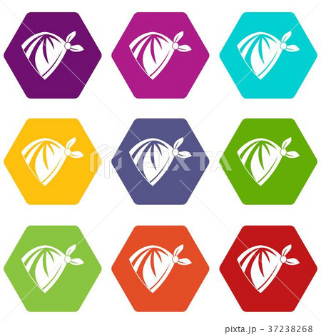 Cowboy neckerchief icon set color hexahedron