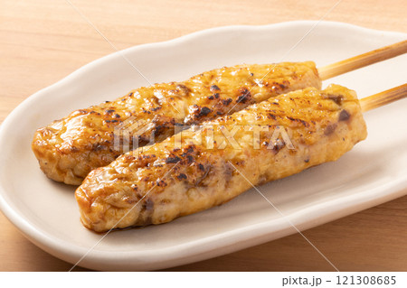 皿に乗せた3本のつくね串