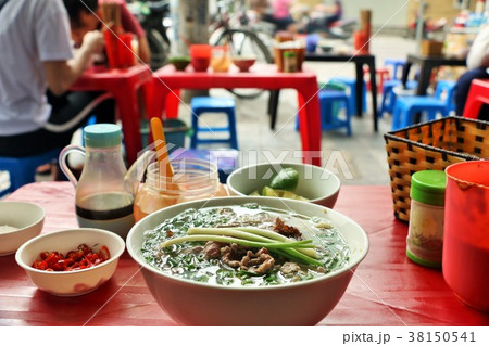 注)湯気は合成です。エスニック料理、牛肉のフォー(ベトナムなどの米粉の麺料理、牛出汁のスープ)