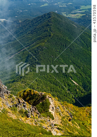 東北飯豊連峰 飯豊山山頂から 登山道を望む