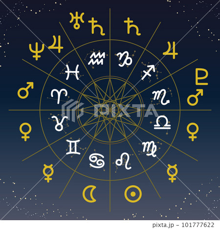 Zodiac astrology horoscope wheel. Zodiacal animals sign in circle. Horoscope vector sign