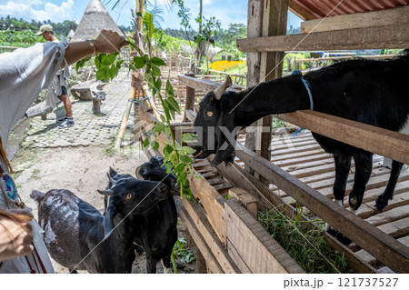 印尼峇裡島2024年農村餐廳景觀餵養山羊