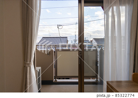 ワンルームマンションの室内からベランダを見たところ