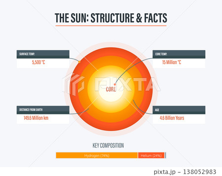 Sun Structure and Facts Educational Infographic Diagram with Core Layers and Composition Data
