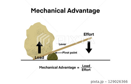 illustration of physics, lever is a simple machine consisting of a beam or rigid rod pivoted at a fixed hinge or fulcrum, leverage is mechanical advantage gained in a system, law of the lever