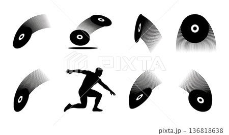 Black Solid Discus In Flight Silhouettes Set of Six on White Background