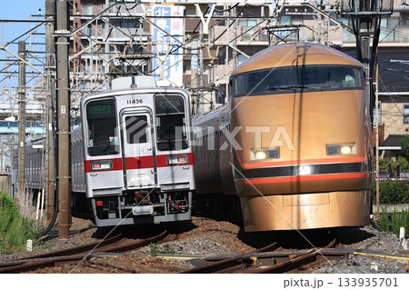 東武線直通特急:JR車と東武車の並び(埼玉県南部)