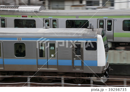 並走する山手線E231系・京浜東北線快速電車E233系
