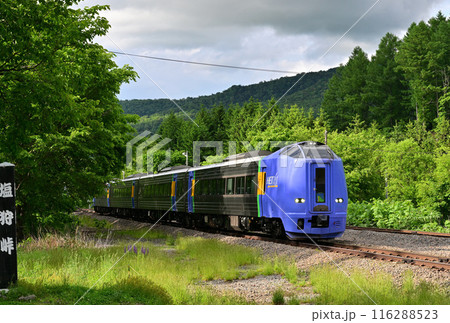 夏草のジャングルを抜ける特急サロベツ 特急サロベツ 宗谷本線