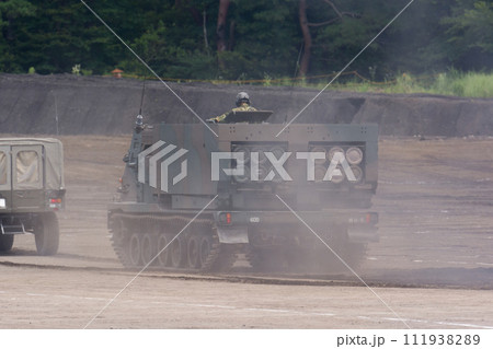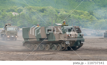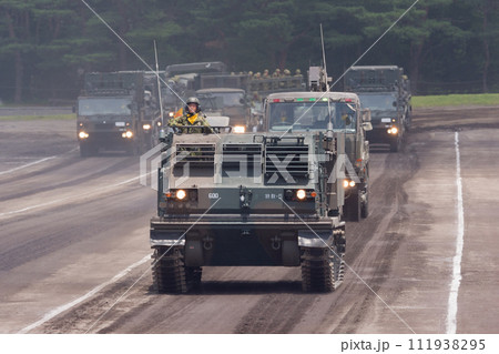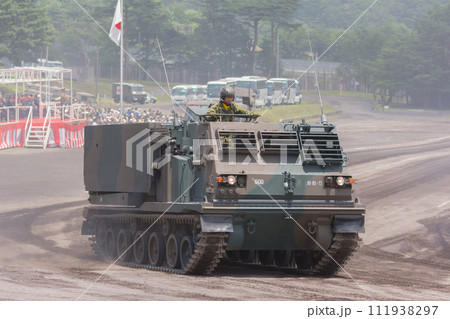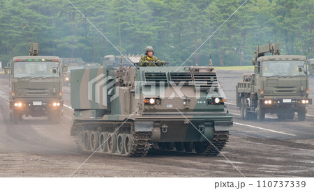 観閲行進する陸上自衛隊多連装ロケットシステムMLRS