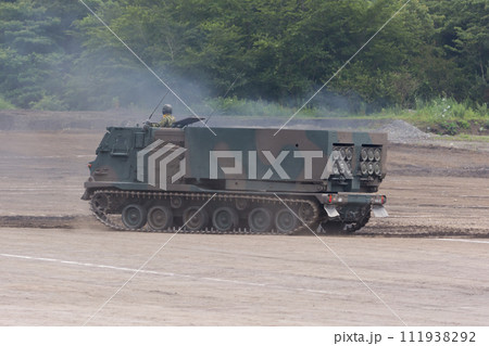 走行する陸上自衛隊多連装ロケットシステムMLRS