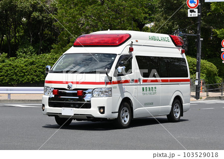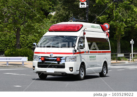 緊急走行する東京消防庁の救急車