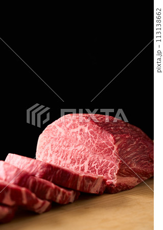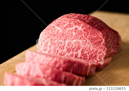 カットした国産黒毛和牛もも肉(シンシン)ステーキ用