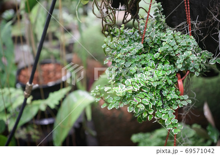 Close up of potted plants of creeping fig Ficus
