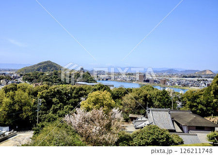 犬山市、犬山城から眺める伊木山と木曽川ライン大橋