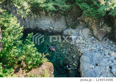 <長野>阿寺渓谷の犬帰りの淵でレジャーを楽しむカップル