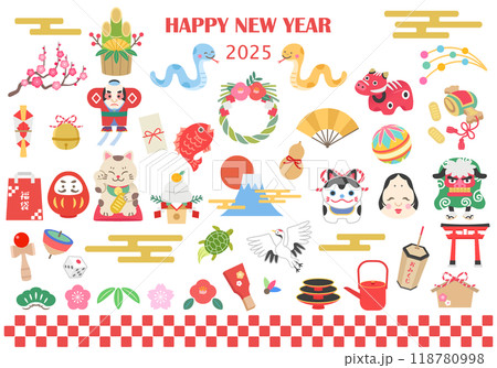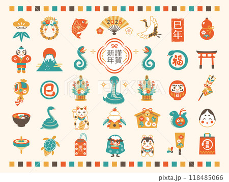 2025年 お正月アイコンイラストセット (巳年)