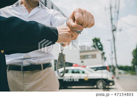 手錠 逮捕 (犯罪 違法 犯人 悪人 容疑者 事件 犯罪者 不審者 侵入 泥棒 顔なし 凶悪犯)