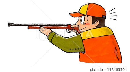 ライフル銃をかまえる猟師と茶色いウサギターゲットマーク