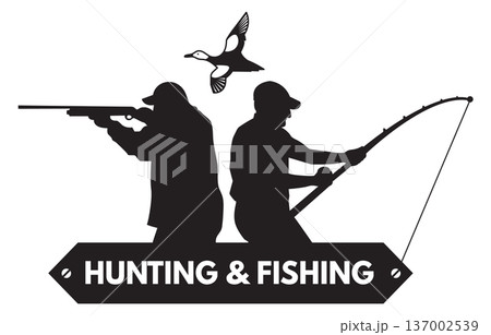 Hunting and fishing black emblem. Season outdoor hobby sticker