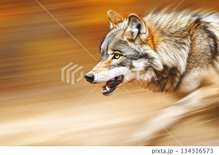 Strikingly Detailed Wolf Caught in Mid Air Leap Against a Vivid Background