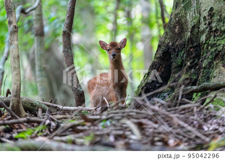 世界自然遺産屋久島の森(7月)かわいいヤクシカの子ども