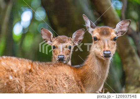 ヤクシカの親子 警戒 世界自然遺産屋久島(夏