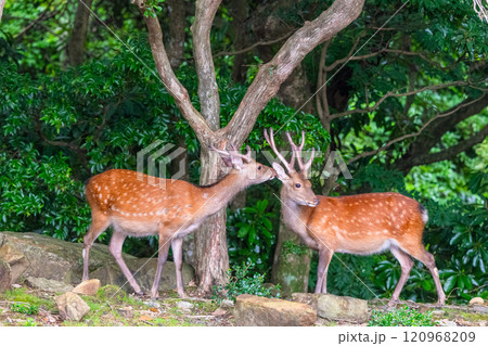 ヤクシカの雄 愛撫 世界自然遺産屋久島(夏