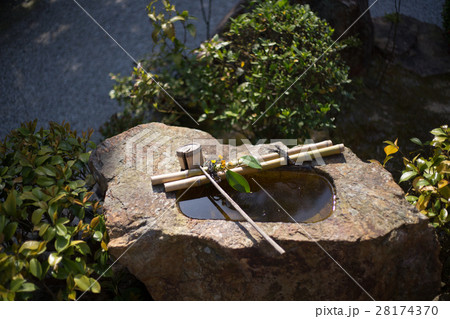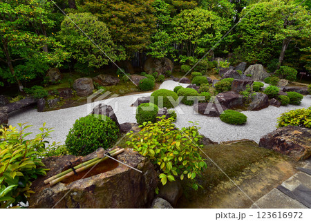 妙心寺退蔵院、元信の庭。季節の手水鉢、春