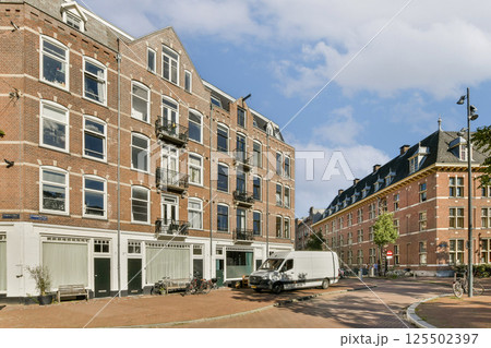 A picturesque street scene showcasing historic brick buildings with intricate architectural details and inviting outdoor spaces, perfect for urban exploration.