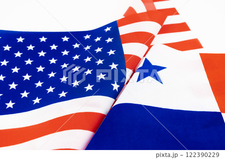 Relations between america and panama flag on white background.