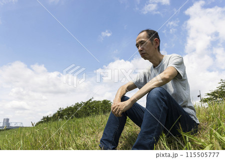 一人で公園のベンチに座る孤独な高齢男性のイメージ