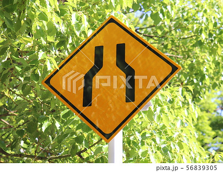 道路標識 幅員減少 警戒標識の看板のイラスト ピクトグラム