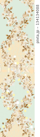 Assorted floral geometric and heart pattern panel designs in soft pastel colors