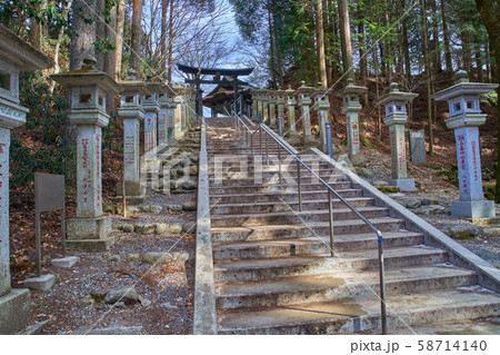 埼玉県秩父市の三峯神社の参道と石灯篭
