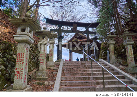 埼玉県秩父市の三峯神社の遥拝殿(ようはいでん)石段から随身門方面