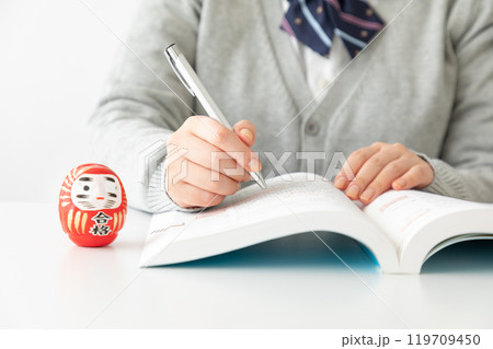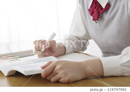 宿題・勉強をする小学生・中学生の女の子(夏休み・受験勉強)