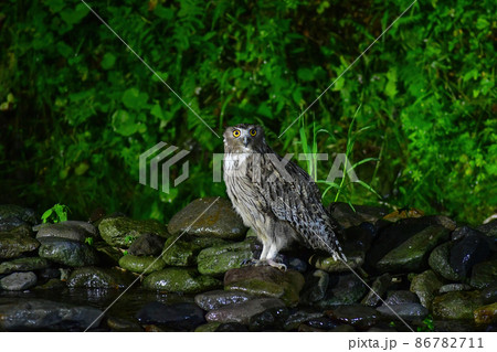 知床など北海道道東の森に住む絶滅危惧種で天然記念物の世界最大のフクロウ、シマフクロウ