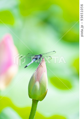 大賀蓮のつぼみに止まるショウジョウトンボ