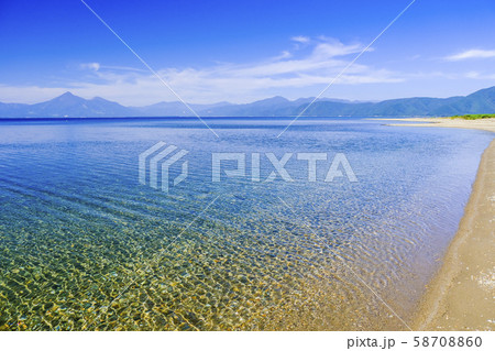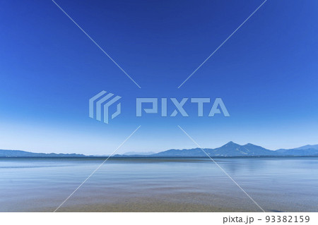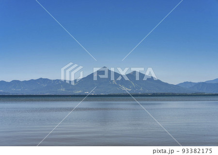 夏の猪苗代湖と磐梯山 横沢浜からみた風景 福島県郡山市