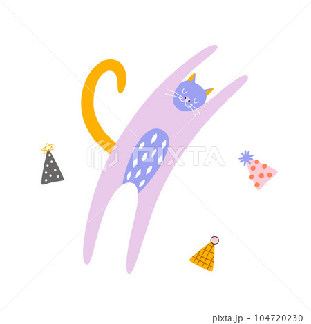 Sleeping grey cute cat baby animal. Nursery vector cartoon sleep animal cat, cute print illustration. Adorable gray and pink hand drawn
