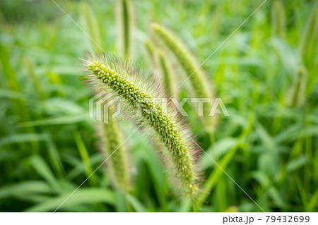 梅雨時の猫じゃらし エノコログサの群生 b-1
