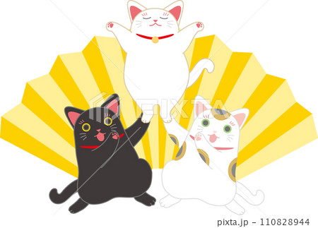 招き猫_ダンシング招き猫_扇入り_組体操する招き猫三匹