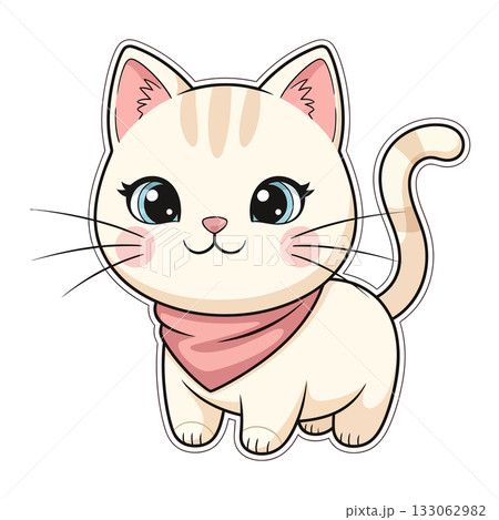 Adorable Creamy Striped Kitten Vector Sticker Design with Pink Scarf for Decoration