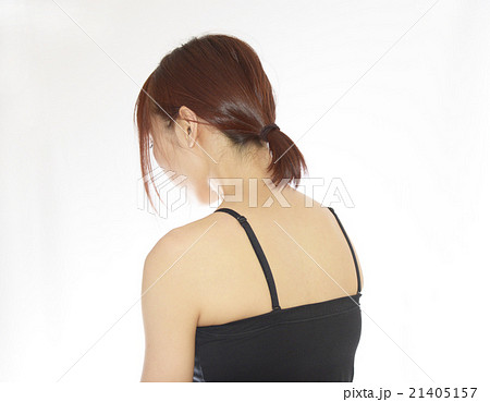 猫背の女性 猫背 ねこぜ ねこ背 姿勢 肩こり 疲労 キャミソール 白バック