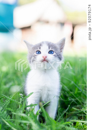 Tiny kitten with blue ayes playing