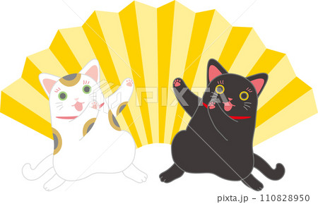 招き猫_ダンシング招き猫_扇入り_両側からお手手招いてポーズ決める招き猫二匹