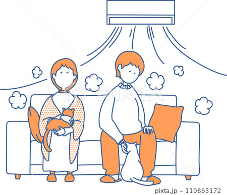 夏の熱中症対策にエアコンや扇風機を使用する人々のセット